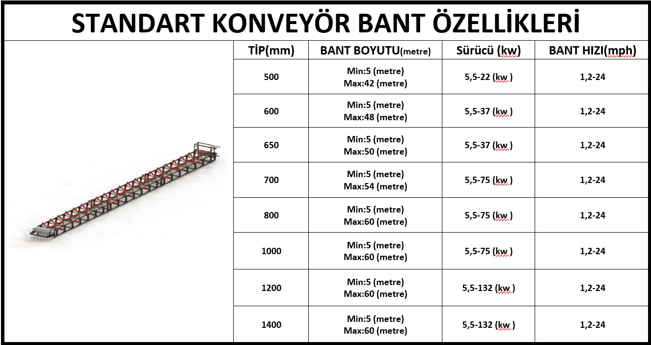 KONVEYÖR BANT TEKNİK ÖZELLİKLERİ: